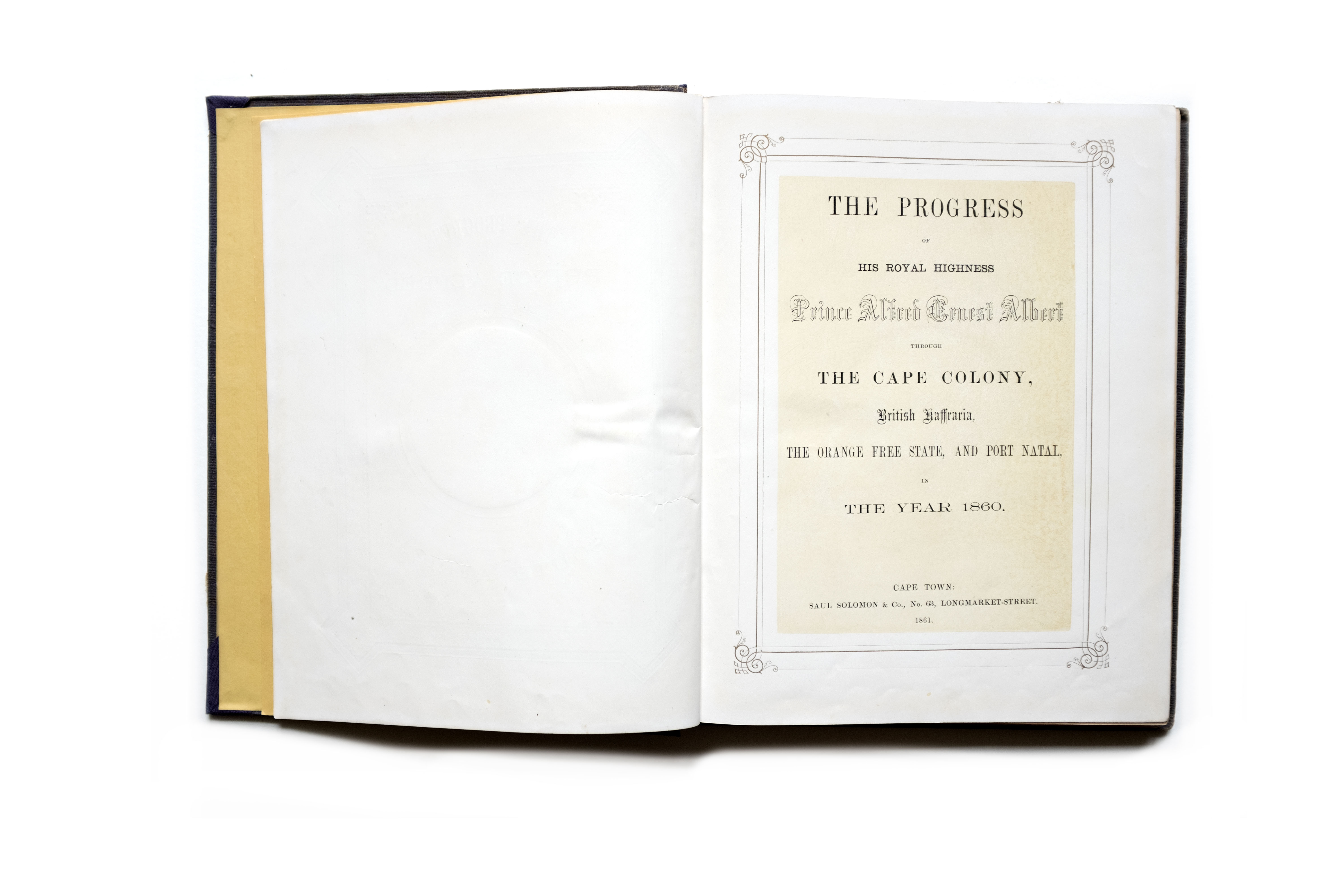 Title: The Progress of his Royal Highness Prince Alfred Ernest Albert through the Cape Colony, British Kaffraria, the Orange Free State, and Port Natal, in the year 1860 Photographer(s): Joseph Kirkman, York and possibly Frederick Young Designer(s): unknown Writer(s): unknown Publisher: Saul Solomon & Co., Cape Town, 1861 Pages: 180 pp Language: English ISBN: – Dimensions: 29×23 cm Edition: – Country: Tunisia From the collection of Flip Bool