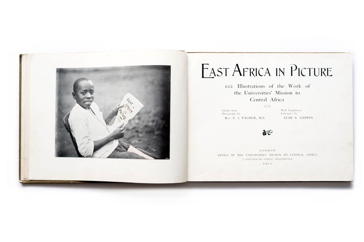 Title: East Africa in Picture Photographer(s): Rev. E.S. Palmer and others such as A.C. Gomez  Designer(s): – Writer(s): Elsie B. Ashwin Publisher: Office of the Universities’ Mission to Central Africa, London 1900 Pages: 72 Language: English ISBN: – Dimensions: 29.5 x 22,5 cm Edition: unknown, green, blue and red cover colours are known. Country: British East Africa and Nyasaland (Tanzania and Malawi)