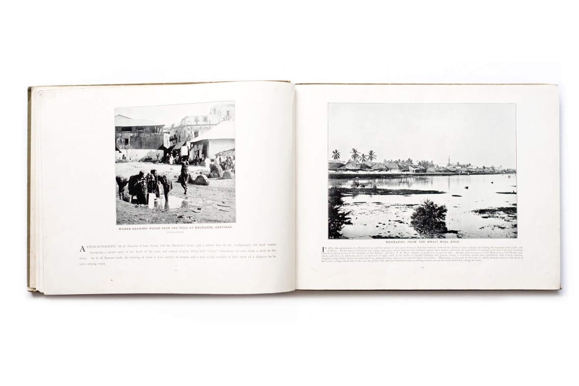 Title: East Africa in Picture Photographer(s): Rev. E.S. Palmer and others such as A.C. Gomez  Designer(s): – Writer(s): Elsie B. Ashwin Publisher: Office of the Universities’ Mission to Central Africa, London 1900 Pages: 72 Language: English ISBN: – Dimensions: 29.5 x 22,5 cm Edition: unknown, green, blue and red cover colours are known. Country: British East Africa and Nyasaland (Tanzania and Malawi)