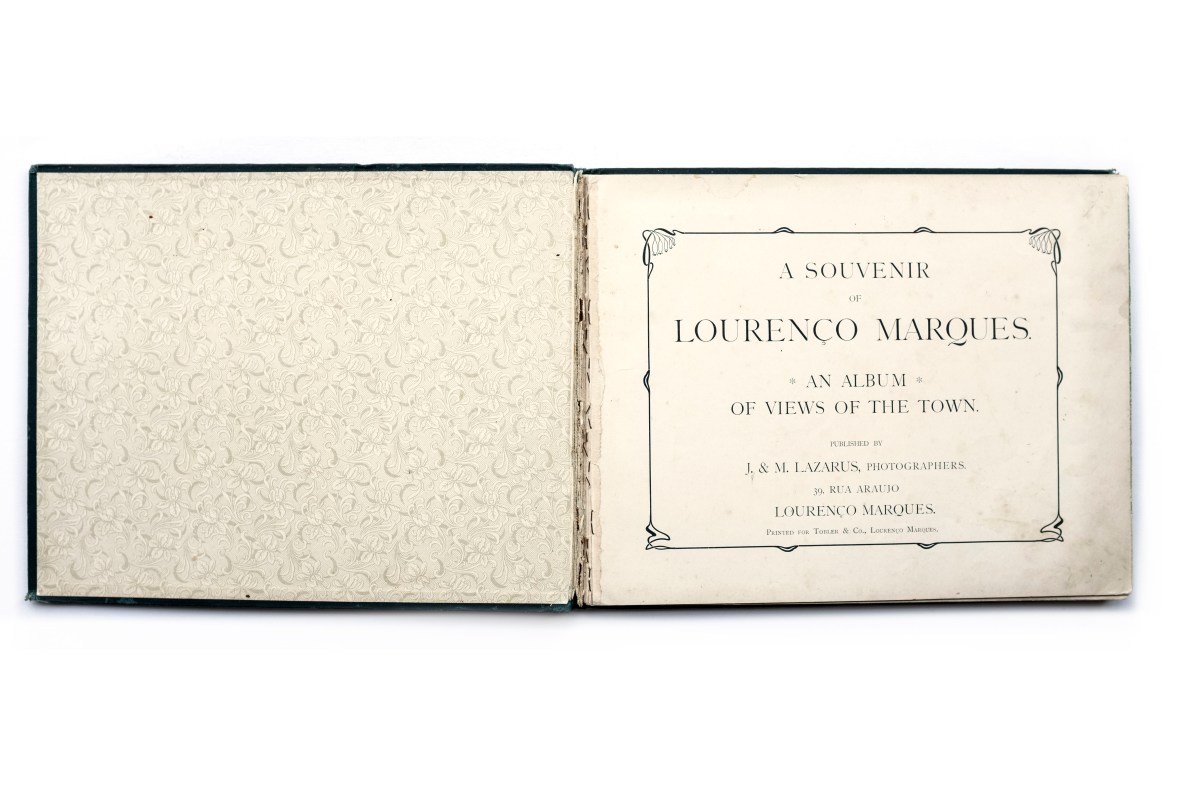 Title: A souvenir of Lourenço Marques Photographer(s): Joseph Lazarus and Maurice Lazarus Designer(s): – Writer(s): – Publisher: J. & M. Lazarus, Lourenço Marques 1901 Pages: 82 pp, 38 photographic plates and many advertisements Language: English ISBN: – Edition: – Dimensions: 29 x 23 cm Country: Mozambique