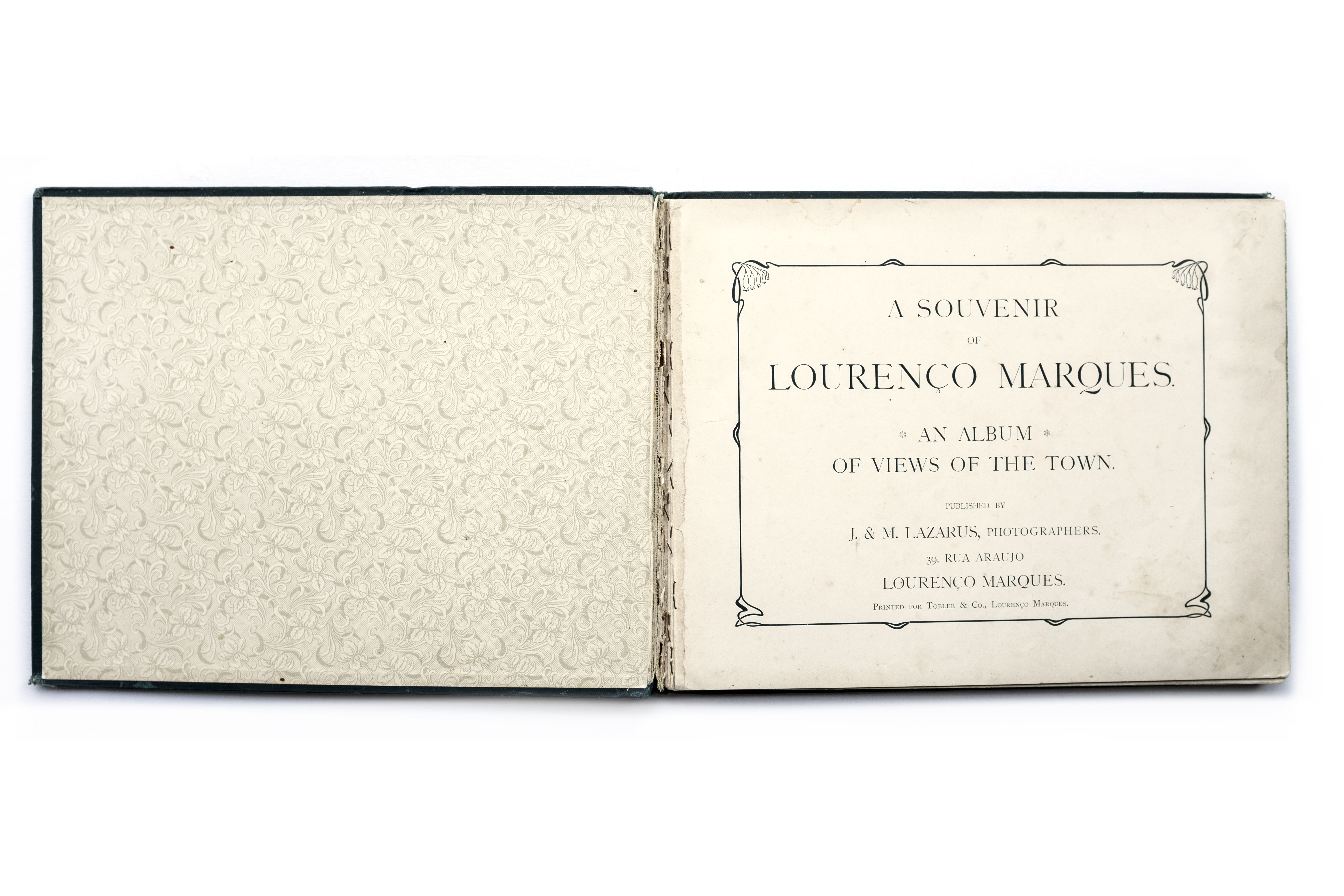 Title: A souvenir of Lourenço Marques Photographer(s): Joseph Lazarus and Maurice Lazarus Designer(s): – Writer(s): – Publisher: J. & M. Lazarus, Lourenço Marques 1901 Pages: 82 pp, 38 photographic plates and many advertisements Language: English ISBN: – Edition: – Dimensions: 29 x 23 cm Country: Mozambique