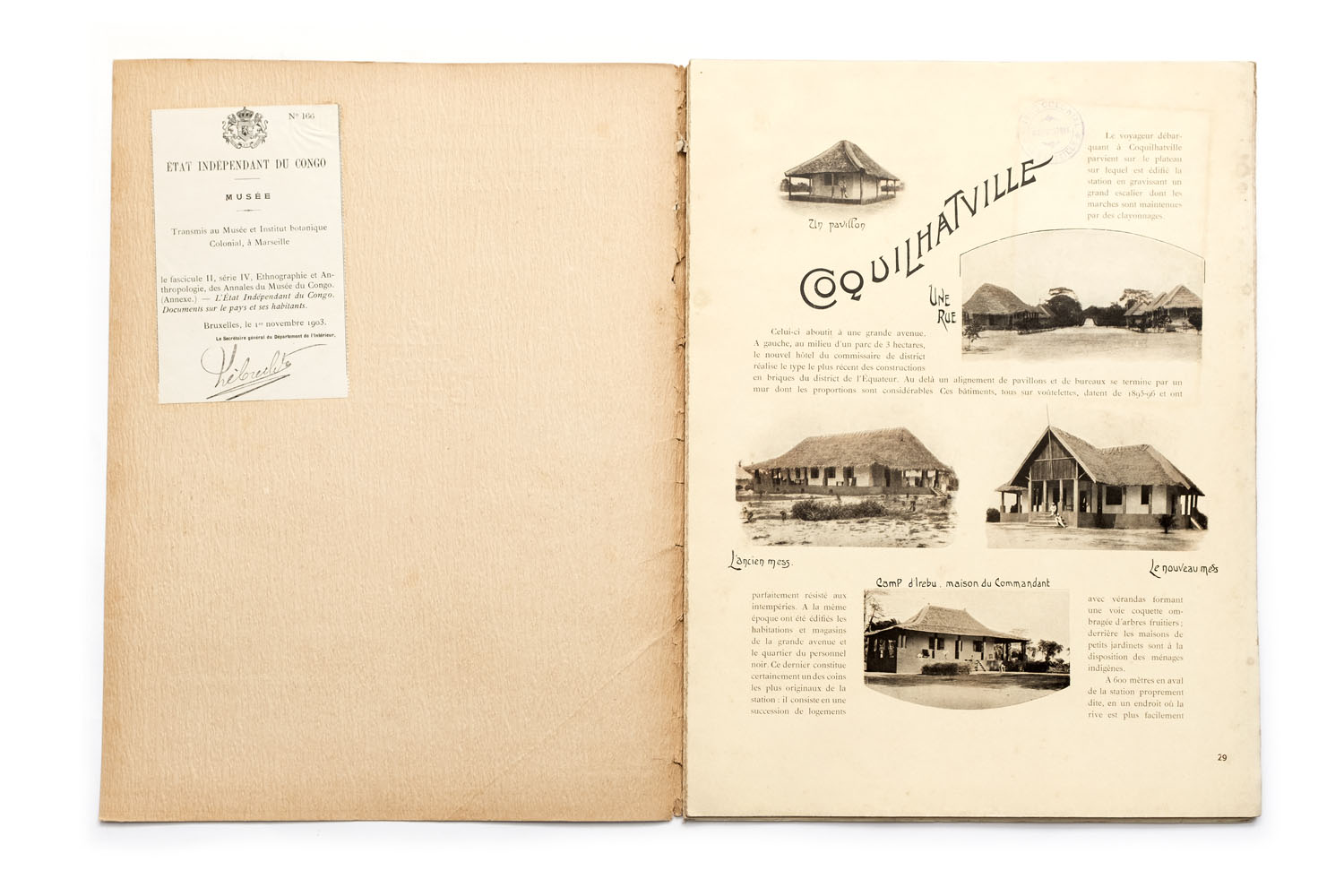 Title: L’État indépendant du Congo. – Documents sur le pays et ses habitants. Ethnographie et antropologie. Serie IV. – Fascicule I Photographer(s): Various photographers. Taken from the collection of the Congo Free State Designer(s): Jean Malveaux Writer(s): – Publisher: Published as an attachment to the ‘Annales du Musée du Congo, Tervuren/Brussels July 1st 1903 Pages: 32 (29-60) Language: French ISBN: – Dimensions: 27 x 37 cm Edition: Loose pages in a document folder, with one heliogravure Country: Congo Free State