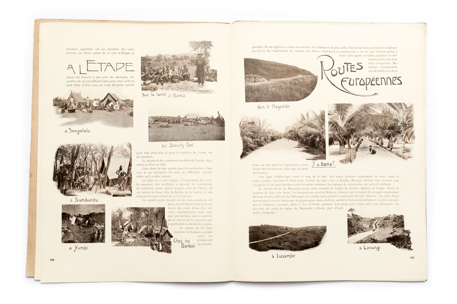 Title: L’État indépendant du Congo. – Documents sur le pays et ses habitants. Ethnographie et antropologie. Serie IV. – Fascicule IV. Voies et moyens de communication Photographer(s): Various photographers. Taken from the collection of the Congo Free State Designer(s): Jean Malveaux Writer(s): – Publisher: Published as an attachment to the ‘Annales du Musée du Congo, Tervuren/Brussels February 25th 1903 Pages: 30 (99-128) Language: French ISBN: – Dimensions: 27 x 37 cm Edition: Loose pages in a document folder Country: Congo Free State