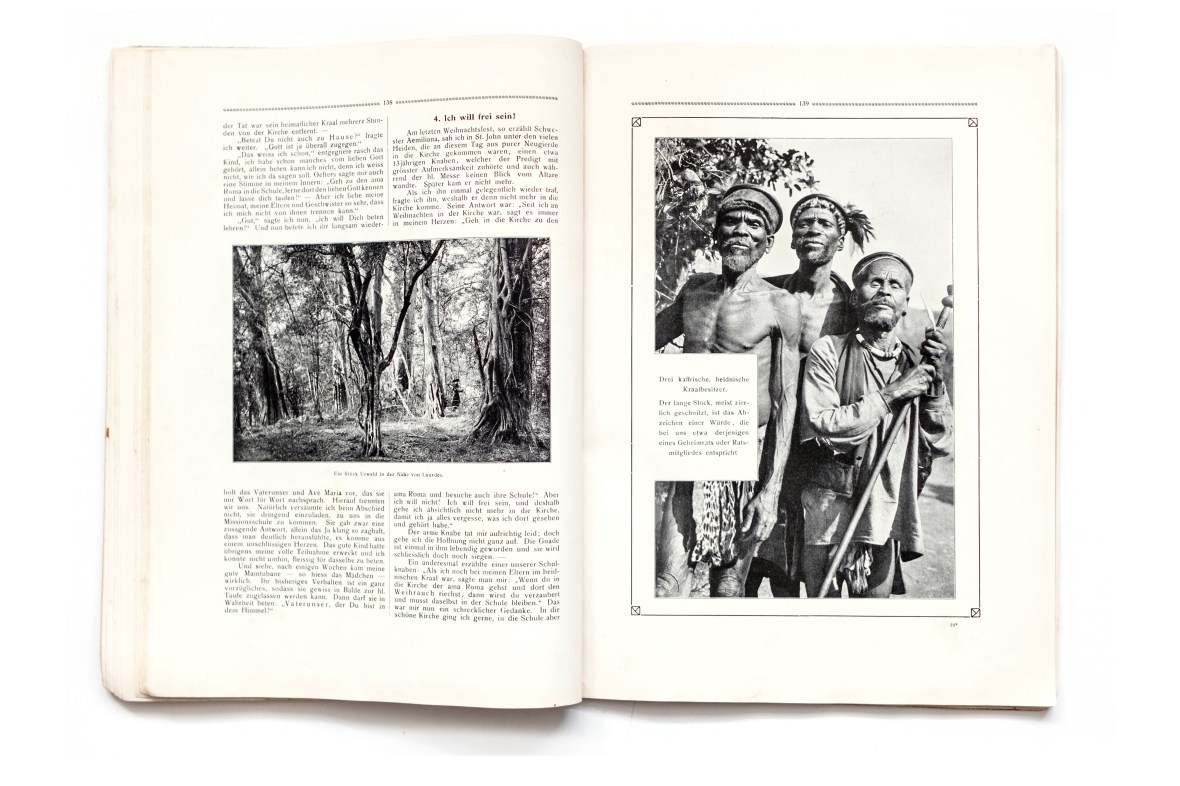 Title: Das Trappisten-Missionskloster Mariannhill, oder Bilder aus dem afrikanischen Missionsleben Photographer(s): Various photographers collected on commission by one of the priests. Many of the photographs were made by the missionaries themselves Designer(s):  Writer(s):  Publisher: Herrsche Verlagshandlung, Berlin, Karlsruhe, München, Strassburg, Vienna and St.Louis, 1907 Pages: 190 with a fold-out map Language: German ISBN: Dimensions: 22 x 30 cm Edition:  Country: South Africa