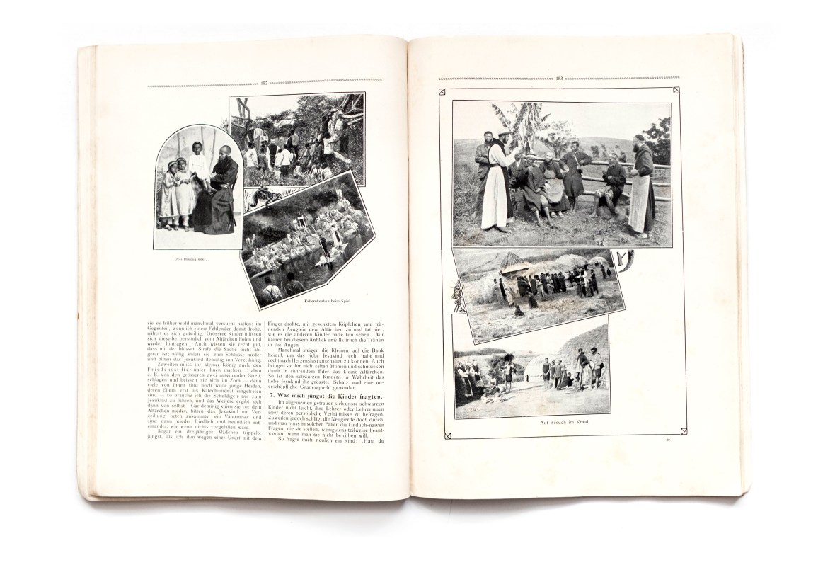 Title: Das Trappisten-Missionskloster Mariannhill, oder Bilder aus dem afrikanischen Missionsleben Photographer(s): Various photographers collected on commission by one of the priests. Many of the photographs were made by the missionaries themselves Designer(s):  Writer(s):  Publisher: Herrsche Verlagshandlung, Berlin, Karlsruhe, München, Strassburg, Vienna and St.Louis, 1907 Pages: 190 with a fold-out map Language: German ISBN: Dimensions: 22 x 30 cm Edition:  Country: South Africa