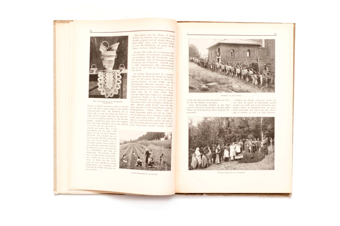 Title: Die Mariannhiller Mission 1882-1922. Bilder aus dem afrikanischen Missionsleben Photographer(s):Various photographers collected on commission by one of the priests. Many of the photographs were made by the missionaries themselves Designer(s):  Writer(s):  Publisher: Fränkischen Gesellschafts-Druckerei (?), Würzburg 1923 Pages: 214 Language: German ISBN: Dimensions: 20 x 28 cm Edition: This is the second edition of this title. “Zweite, bedottend vermehrte Auflage  Country: South Africa