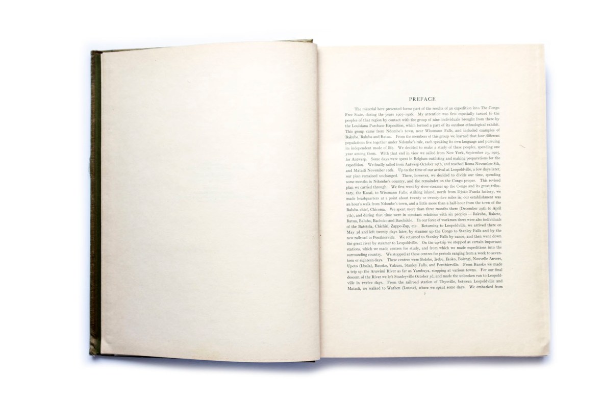 Title: Congo Natives Photographer(s): Manuel Gonzales. Some additional photos by Joseph Clark, R.H. Kirkland and William L. Forfeitt Designer(s): unknown Writer(s): Frederick Starr Publisher: Lakeside Press, Chicago 1912 Pages: 38 text pages + 130 collotype plates (collotypes) Language: English ISBN: – Edition: 500 (Congo Natives had a print run of 500 signed and numbered books, this book wasn’t signed and numbered) Dimensions: 25 x 32 cm Country: Belgian Congo, Democratic Republic of Congo To view the complete book click here