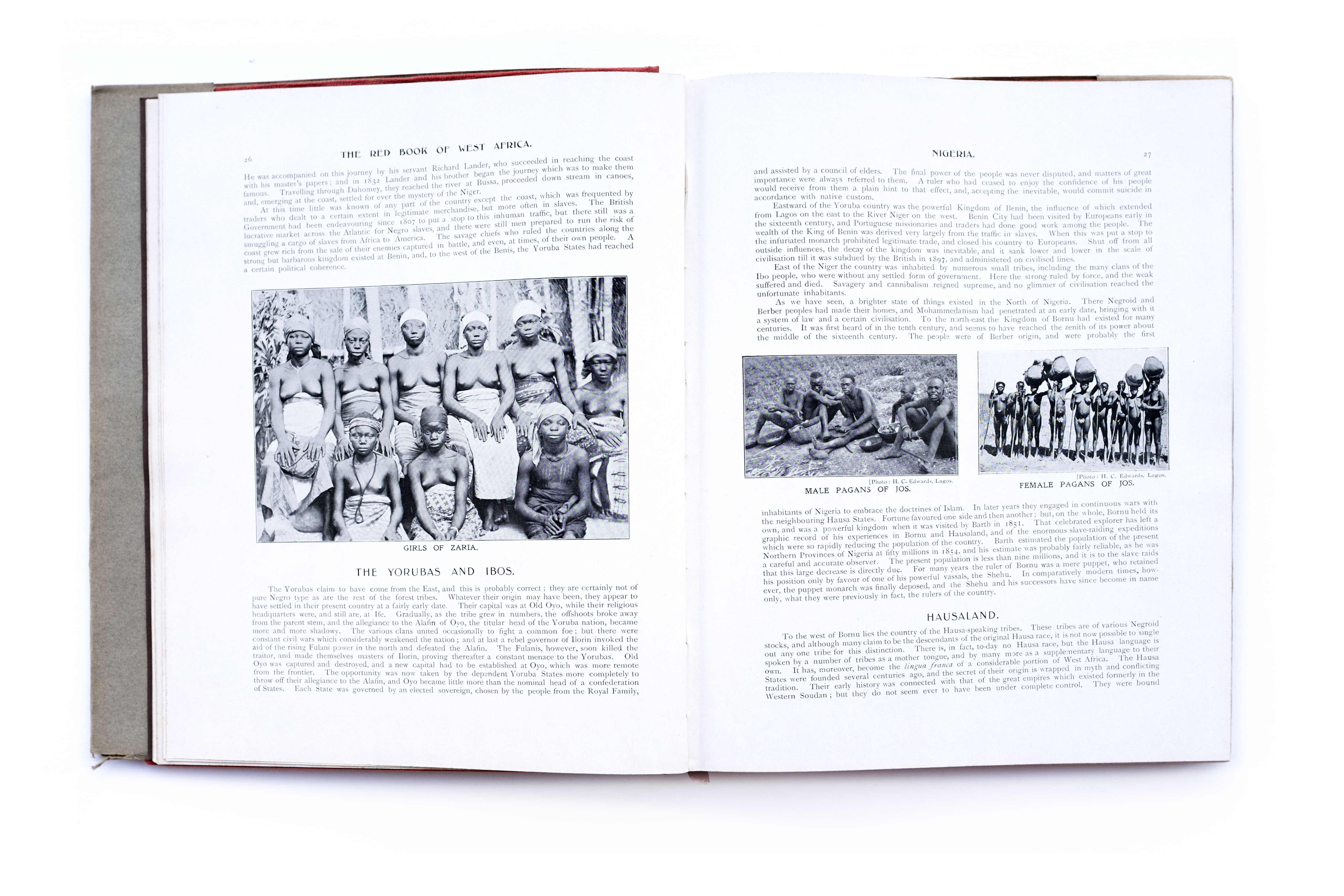 Title: The red book of West Africa: historical and descriptive, commercial and industrial facts, figures, and resources Photographer(s): George S.A. Da Costa (1853-1929), Frederick Richard Christian Lutterodt (1871-1937), Neils Walwin Holm (1865 – about 1927), Justus A.C. Holm (1888), Alphonso Lisk-Carew and Arthur Lisk-Carew, the Nicol Brothers and W.J. Sawyer (?) Designer(s): unknown Writer(s): Allister Macmillan Publisher: W.H. & L. Collingridge, London 1920 Pages: 314pp Language: English ISBN: – Dimensions: 22×28 cm Edition: First edition, a second edition was published in 1968 Country: Nigeria, Gambia, Sierra Leone, Gold Coast (Ghana)