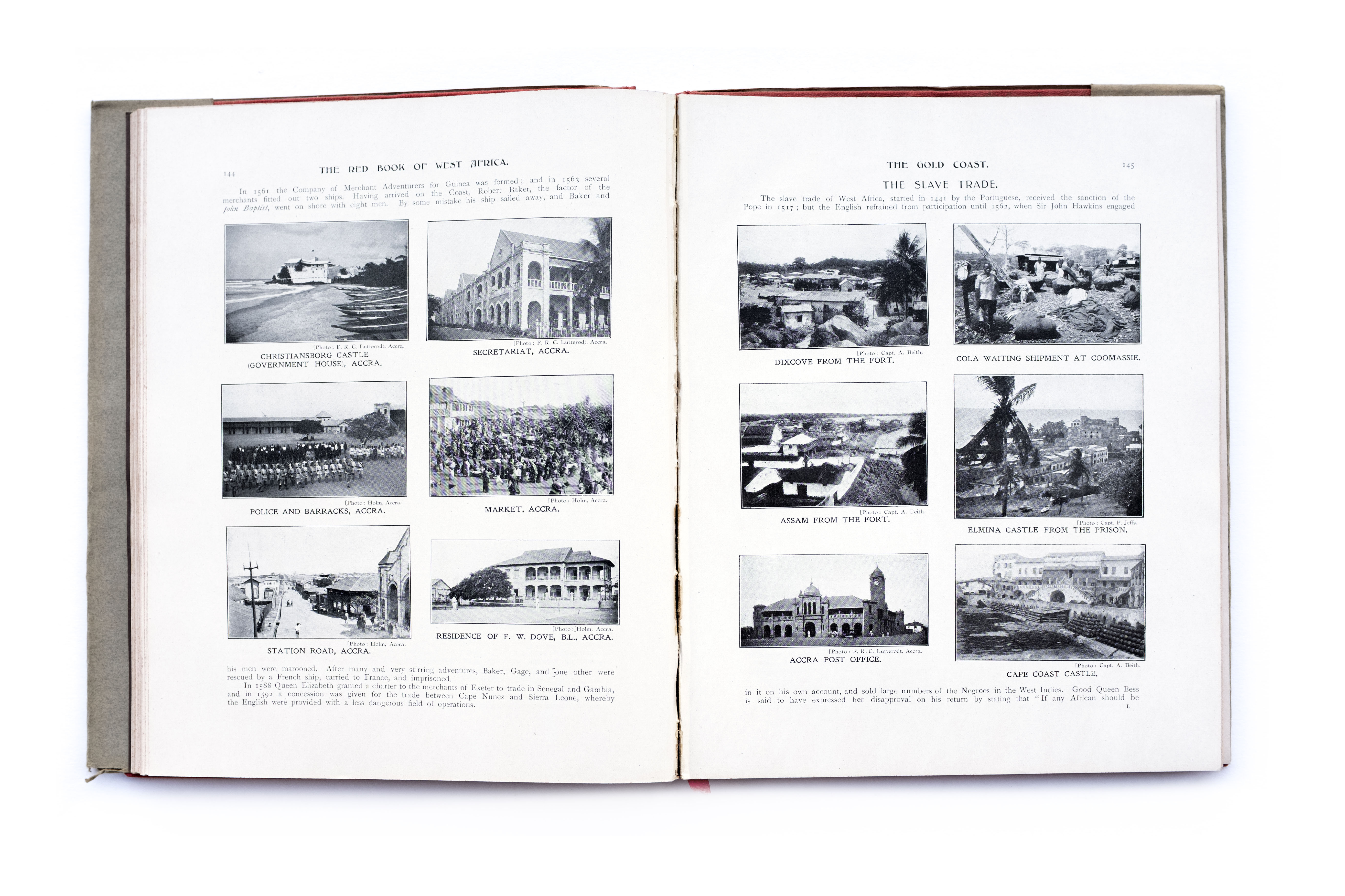 Title: The red book of West Africa: historical and descriptive, commercial and industrial facts, figures, and resources Photographer(s): George S.A. Da Costa (1853-1929), Frederick Richard Christian Lutterodt (1871-1937), Neils Walwin Holm (1865 – about 1927), Justus A.C. Holm (1888), Alphonso Lisk-Carew and Arthur Lisk-Carew, the Nicol Brothers and W.J. Sawyer (?) Designer(s): unknown Writer(s): Allister Macmillan Publisher: W.H. & L. Collingridge, London 1920 Pages: 314pp Language: English ISBN: – Dimensions: 22×28 cm Edition: First edition, a second edition was published in 1968 Country: Nigeria, Gambia, Sierra Leone, Gold Coast (Ghana)