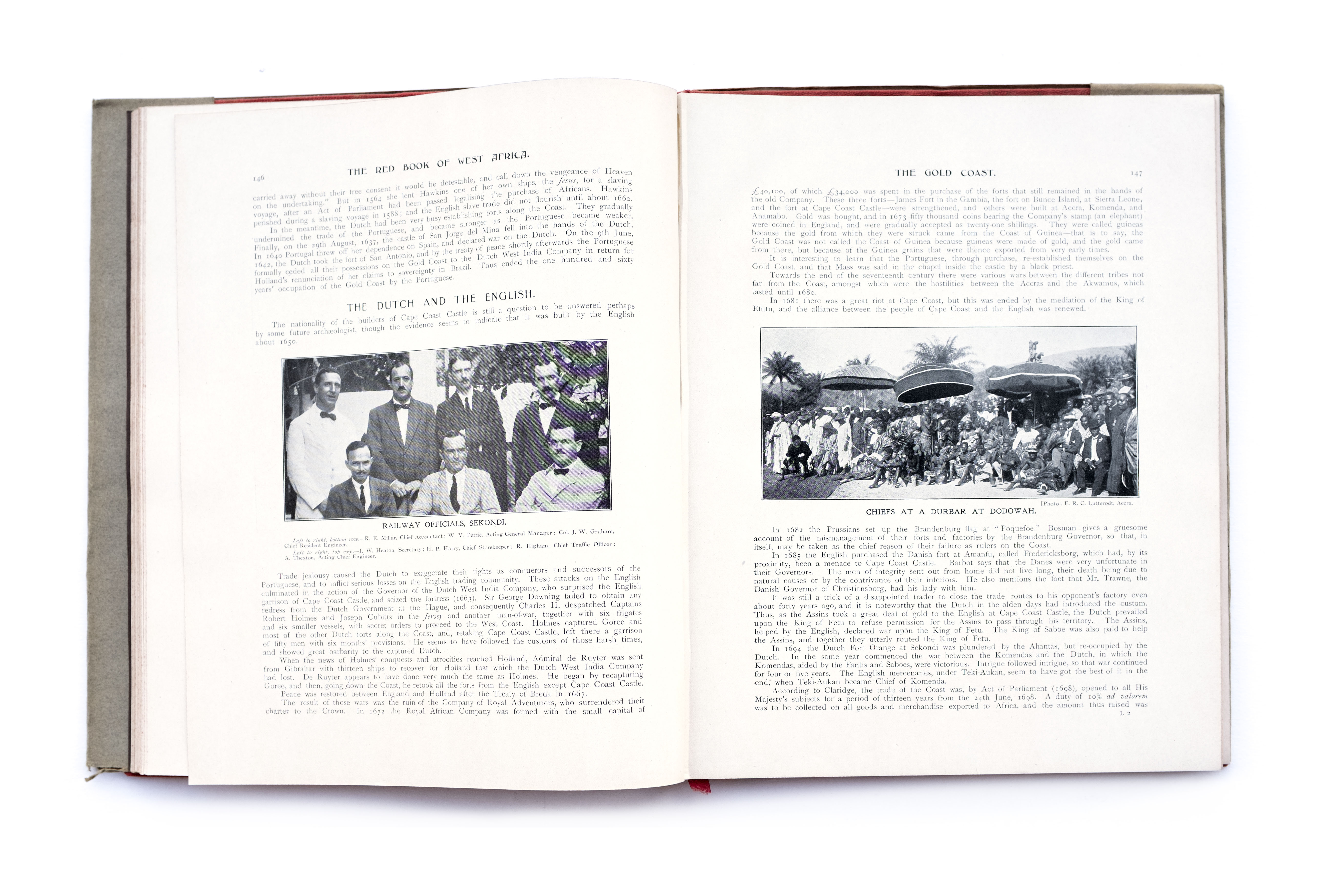 Title: The red book of West Africa: historical and descriptive, commercial and industrial facts, figures, and resources Photographer(s): George S.A. Da Costa (1853-1929), Frederick Richard Christian Lutterodt (1871-1937), Neils Walwin Holm (1865 – about 1927), Justus A.C. Holm (1888), Alphonso Lisk-Carew and Arthur Lisk-Carew, the Nicol Brothers and W.J. Sawyer (?) Designer(s): unknown Writer(s): Allister Macmillan Publisher: W.H. & L. Collingridge, London 1920 Pages: 314pp Language: English ISBN: – Dimensions: 22×28 cm Edition: First edition, a second edition was published in 1968 Country: Nigeria, Gambia, Sierra Leone, Gold Coast (Ghana)