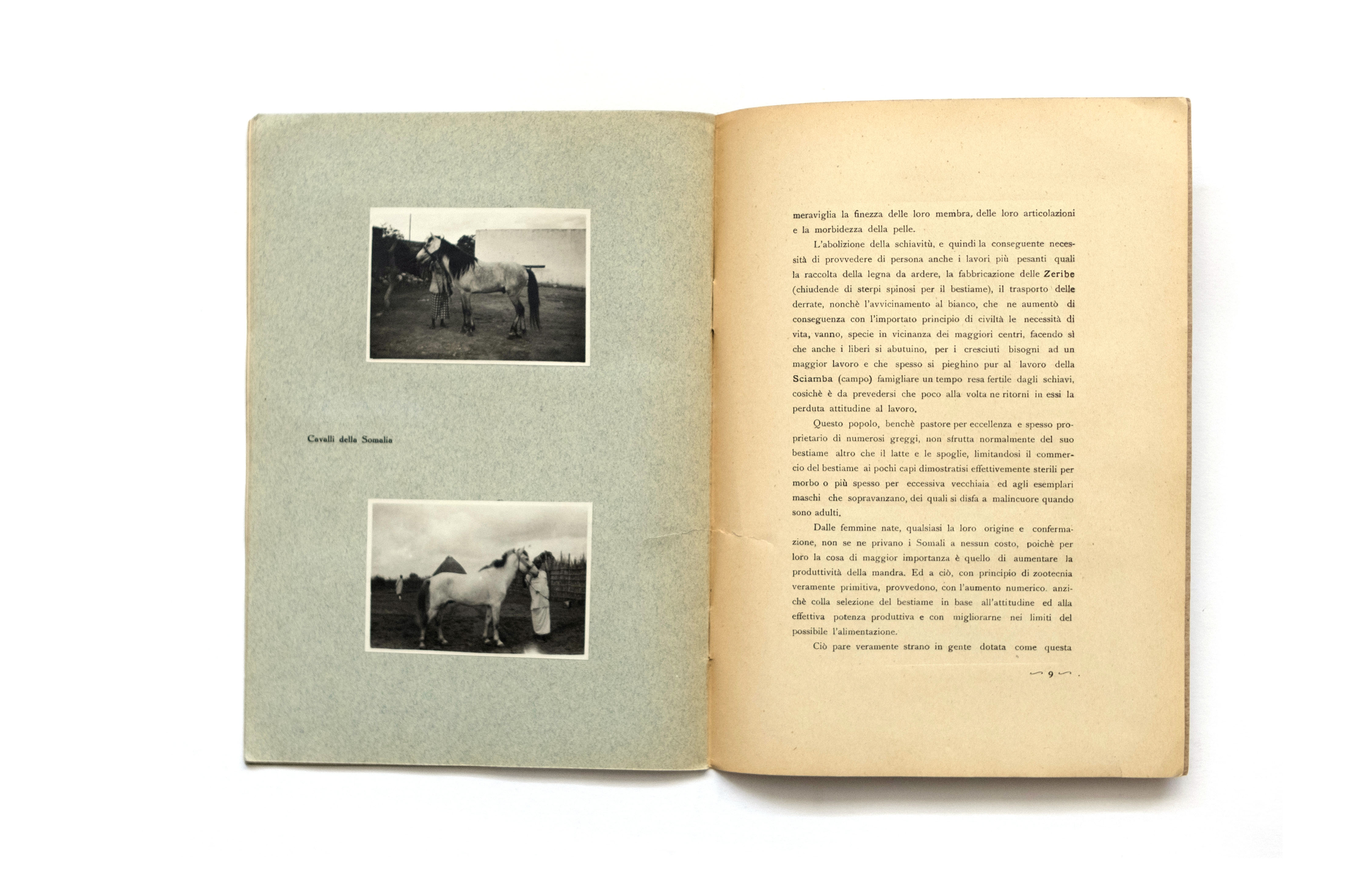 Title: Il popolo pastore delle Somalia ed il suo Bestiame Photographer(s): Dr. Maurizio Ferrio Designer(s): C. Bono – Monealvo Writer(s): Dr. Maurizio Ferrio Publisher: unknown, Italy 1927 Pages: 12 textpages and 8 pages with mounted photographs Language: Italian ISBN: – Dimensions: 17 x 24 cm Edition:   Country: Somalia