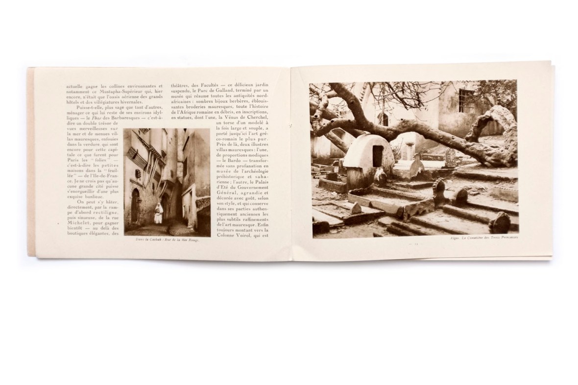 Title: Publication du centenaire de l’Algérie; Alger, Blida et la vallée du Chélif Photographer(s): collections du Service Photographique du Gouvernement Général de l’Algerie, du Touring Club de France, de la Compagnie Aérienne Française, de MM. le General de Bonneval, Bougault, Prouho, Caujolle, E. Monod, Jouve et Georges Rozet Designer(s): – Writer(s): Georges Rozet Publisher: Le Commissariat Général du Centenaire, collection de Horizons de France, Paris 1929) Pages: 64 Language: French ISBN: Dimensions: 20×15 cm Edition/Print run: Country: Algeria