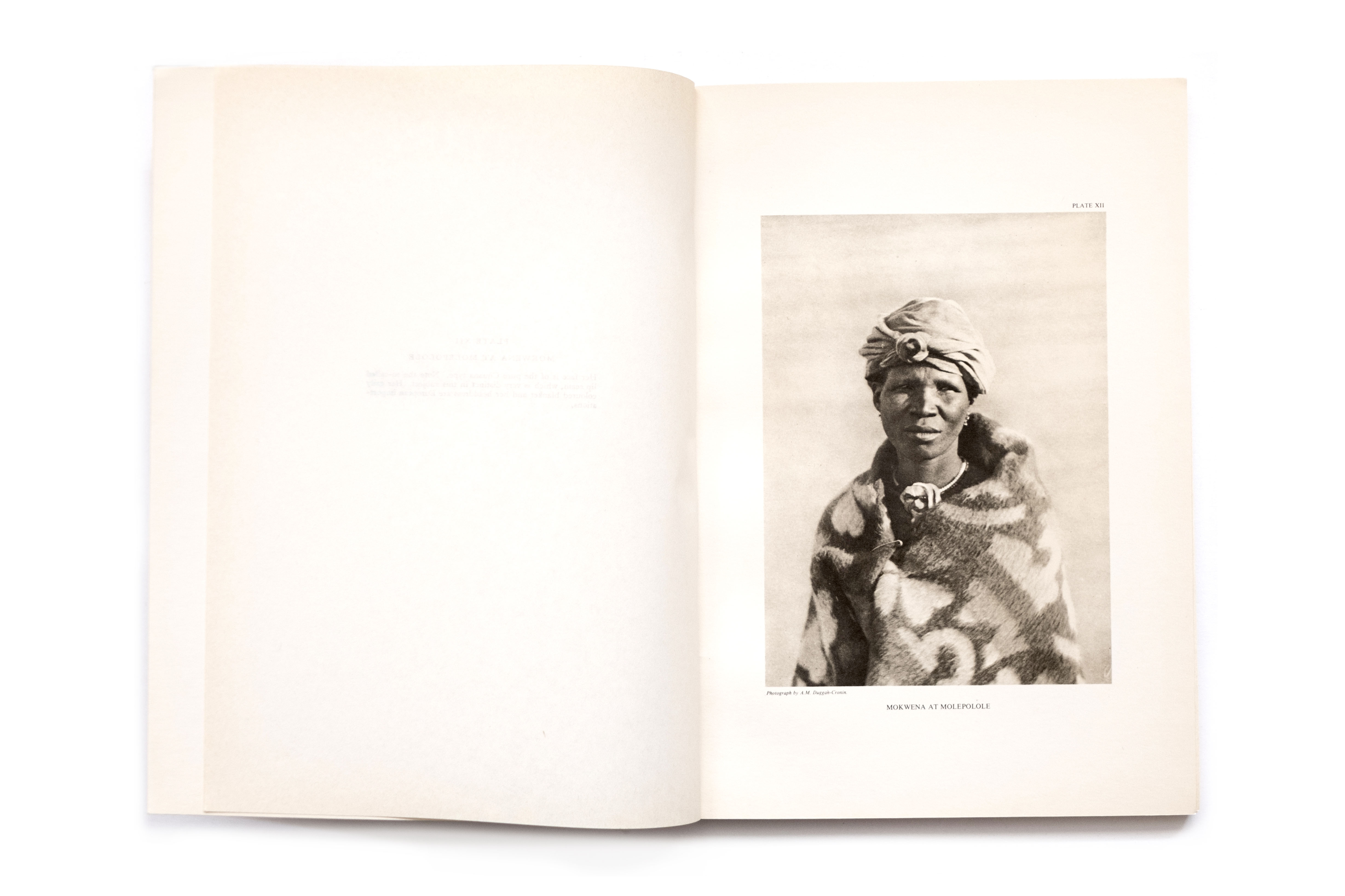 Title: The Bantu Tribes of South Africa. Volume II, Section I, Plates I-XXVI The Suto-Chana Tribes. Subgroup 1 The Bechuana Photographer(s): Alfred Martin Duggan-Cronin Designer(s): – Writer(s): G.P. Lestrade Publisher: Deighton, Bell & Co., Cambridge 1929 and Alexander McGregor Memorial Museum, Kimberley 1929 Pages: 26 photographic plates, 23 text pages Language: English Dimensions: 21 x 30 cm Edition: ? Country: South Africa