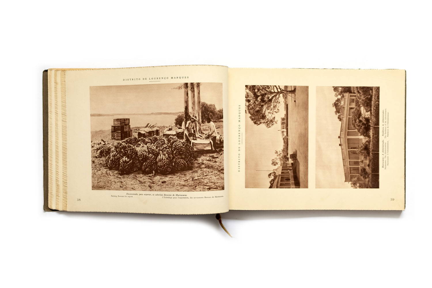 Title: Distrito de Lourenço Marques. Industrias, agricultura, aspéctos das circunscrições. etc. Photographer(s): Various photographers Writer(s): José  dos  Santos  Rufino (ed.) Designer(s): – Publisher: Broschek & Co., Hamburg 1929 Pages: 114 Language: Portuguese, English and French ISBN: – Dimensions: 29.5 x 22 cm Edition: This volume is part 4 of a 10 volumes series Album Fotográficos e Descrítivos  da Colónia de Moçambique Country: Mozambique