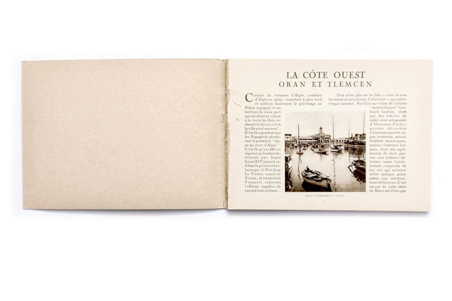 Title: Publication du centenaire de l’Algérie; La Cote Ouest, Oran et Tlemcen Photographer(s): collections du Service Photographique du Gouvernement Général de l’Algerie, du Touring Club de France, de la Compagnie Aérienne Française, de MM. le General de Bonneval, Bougault, Prouho, Caujolle, E. Monod, Jouve et Georges Rozet Designer(s): – Writer(s): Georges Rozet Publisher: Le Commissariat Général du Centenaire, collection de Horizons de France, Paris 1929) Pages: 64 Language: French ISBN: Dimensions: 20×15 cm Edition/Print run: Country: Algeria