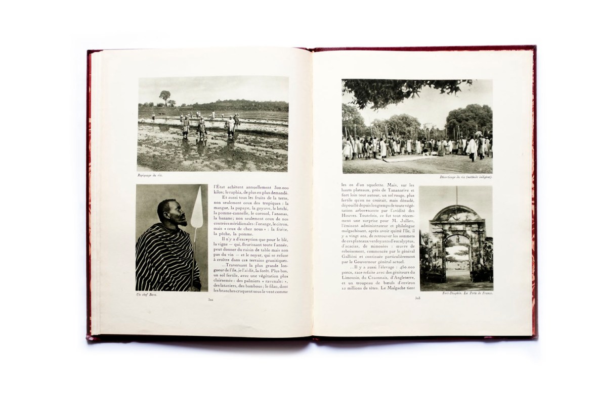 Title: La France Lointaine. Afrique Occidentale Française Photographer(s): Unknown Designer(s): Writer(s): Pierre Mille Publisher: Horizons de France. Paris 1930 Pages: 56, stated 261-316 Language: French ISBN:  Edition: This is volume 19 in a series of books ‘Le Visage de la France’. about the country and its colonies. Some of those volumes (maybe all of them) were published earlier in a magazine format. Dimensions: 24.5 x 33 cm Country: Madagascar