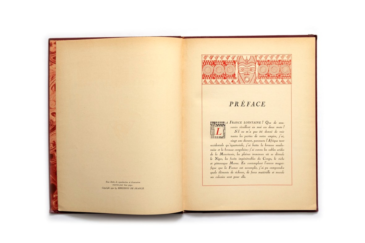Title: La France Lointaine. Afrique Occidentale Française Photographer(s): Unknown Designer(s): Writer(s): Général Gouraud (préface) and Georges Hardy Publisher: Horizons de France. Paris 1930 Pages: 64 Language: French ISBN:  Edition: This is volume 15 in a series of books ‘Le Visage de la France’. about the country and its colonies. Some of those volumes (maybe all of them) were published earlier in a magazine format. Dimensions: 24.5 x 33 cm Country: L’Afrique-Occidentale française (A.-O.F.) – Mauritanie, Sénégal, Mali, Guinée, Côte d’Ivoire, Niger,  Burkina Faso, Togo and Bénin.