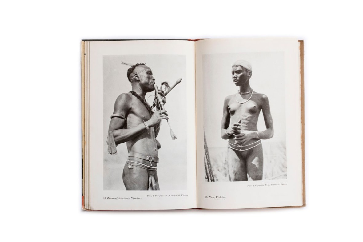 Title: Negertypen des schwarzen Erdteil Photographer(s): H.A. Bernatzik, Georges Specht and Leon Poirier (photographs were taken from various other books such as La croisière noire Designer(s): – Writer(s): M. Gehrts Schomburgk,  Publisher: Orell Füssli Verlag, Zürich 1930 (published by Dr. Emil Schaeffer in the series Schaubücher 17) Pages: 16 textpages, 65 photographic plates Language: German ISBN: – Dimensions: 13 x 19.5 cm Edition: – Country: Various countries