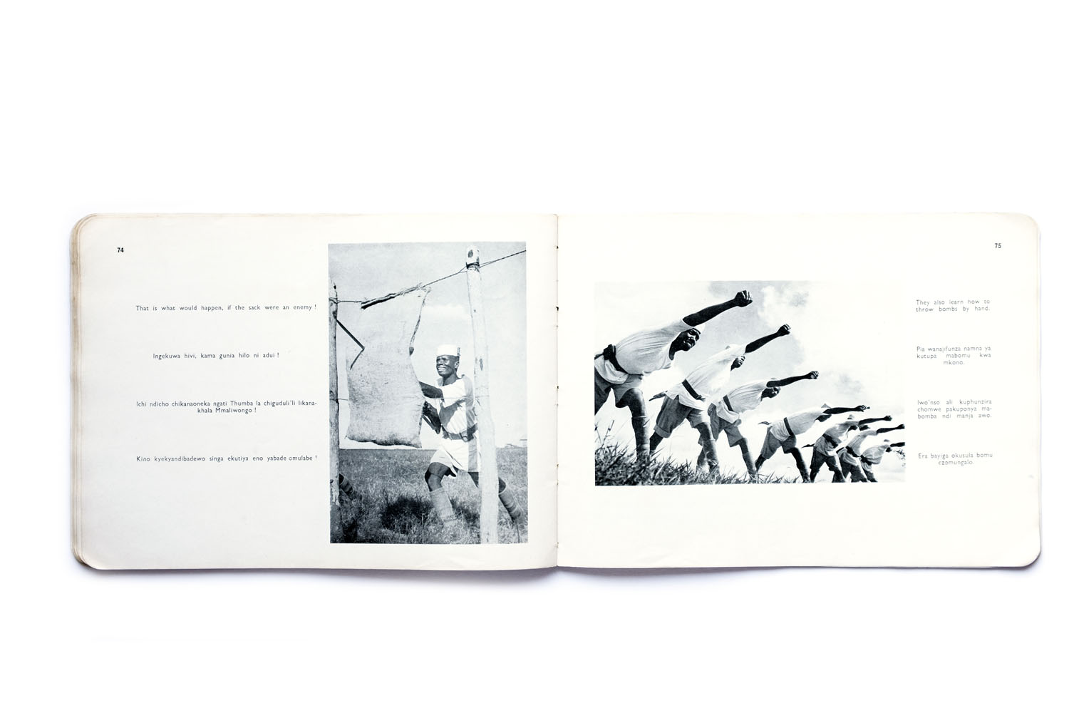 Title: A Spear for Freedom Photographer(s): Captain A. G. Dickson Designer(s): Captain A. G. Dickson Writer(s): Captain A. G. Dickson (most probably) Publisher: The Ministry of Information (E.A. Command), Nairobi 1942 (most likely). Printed by Cape Times Ltd., Cape Town Pages: 92 Language: English, Swahili (for Kenya, Tanganyika and Zanzibar), Chinyanja (for Nyasaland and Northern Rhodesia) and Luganda (for Uganda) ISBN: – Edition: unknown. Another edition, only in English was published as well. See here. Dimensions: 24,5 x 18 cm Country: Tanzania