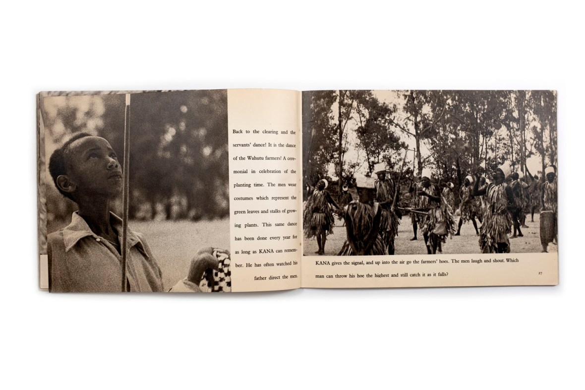 Title: Kana, prince of darkest Africa Photographer(s): – Designer(s): – Writer(s): Elizabeth K. Solem Publisher: Encyclopaedia Brittannica Press, Chicago/New York 1947 Pages: 40 Language: English ISBN: – Edition: – Dimensions: 25.5 x 19.5 cm Country: Rwanda From the film A giant people – The Watussi (1939)