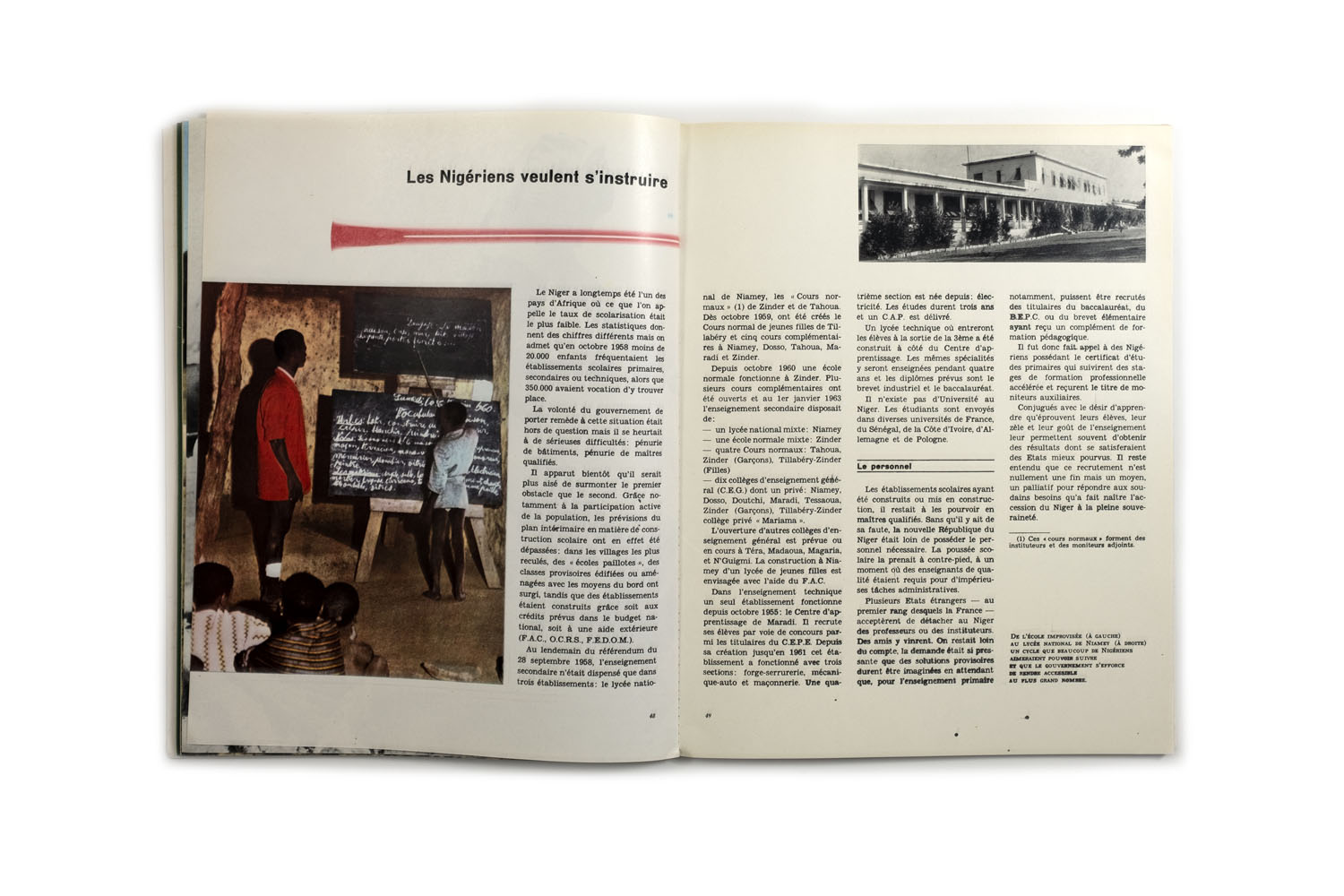 Title: Le Niger en marche Photographer(s): unknown, various photographers Designer(s): – Writer(s): – Publisher: Ministère de la défense et de la jeunesse du Niger Pages: 120 pp. + a section of advertisements Language: French ISBN: – Edition: – Dimensions: 23 x 29 cm Country: Niger
