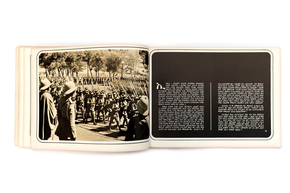 Title: Biography Of An Idea – Story Of A Vision Achieved Photographer(s): Various photographers Designer(s): – Writer(s): – Publisher: Published by the Ministry of Information, Printed by Artistic Printers, Addis Abeba 1973 (?) Pages: 80 Language: Amharic ISBN: – Dimensions: 27 x 20 cm Edition: There seems to be an English version as well Country: Ethiopia