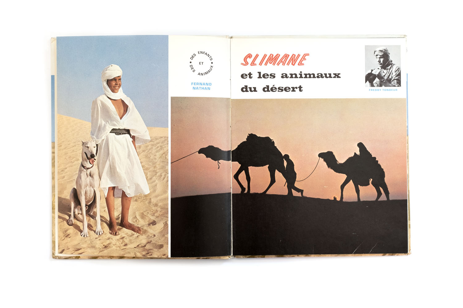 Title: Slimane et les animaux du desert Photographer(s): Freddy Tondeur Designer(s): J.D. Lortsch Writer(s): – Publisher: Éditions Nathan, Paris (?) 1972 Pages: 32 Language: French ISBN: – Dimensions: 21.5 x 26.5 cm Edition: Country: Tunesia and Libya