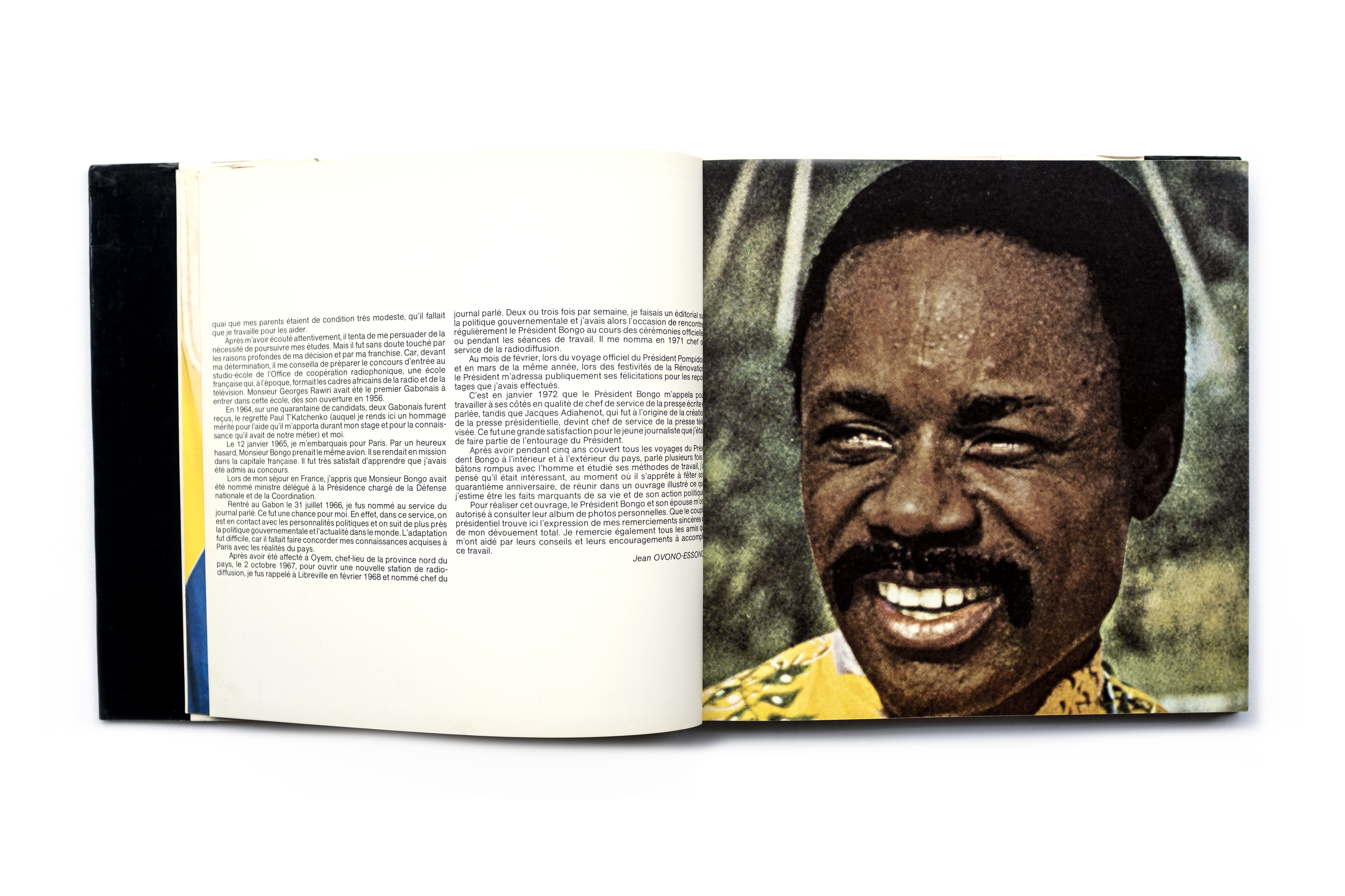 Title: Le président Bongo Photographer(s): Official information, Prunet, Desprats, Longeville and R. Groux Designer(s): Unknown Writer(s): Jean Ovono-Essono Publisher: Une coédition multiples-gabon et Paul Bory s.a., ? 1975 Pages: 130 pp Language: French ISBN: Dimensions: 24.5 x 24.5 cm Edition: – Country: Ghabon