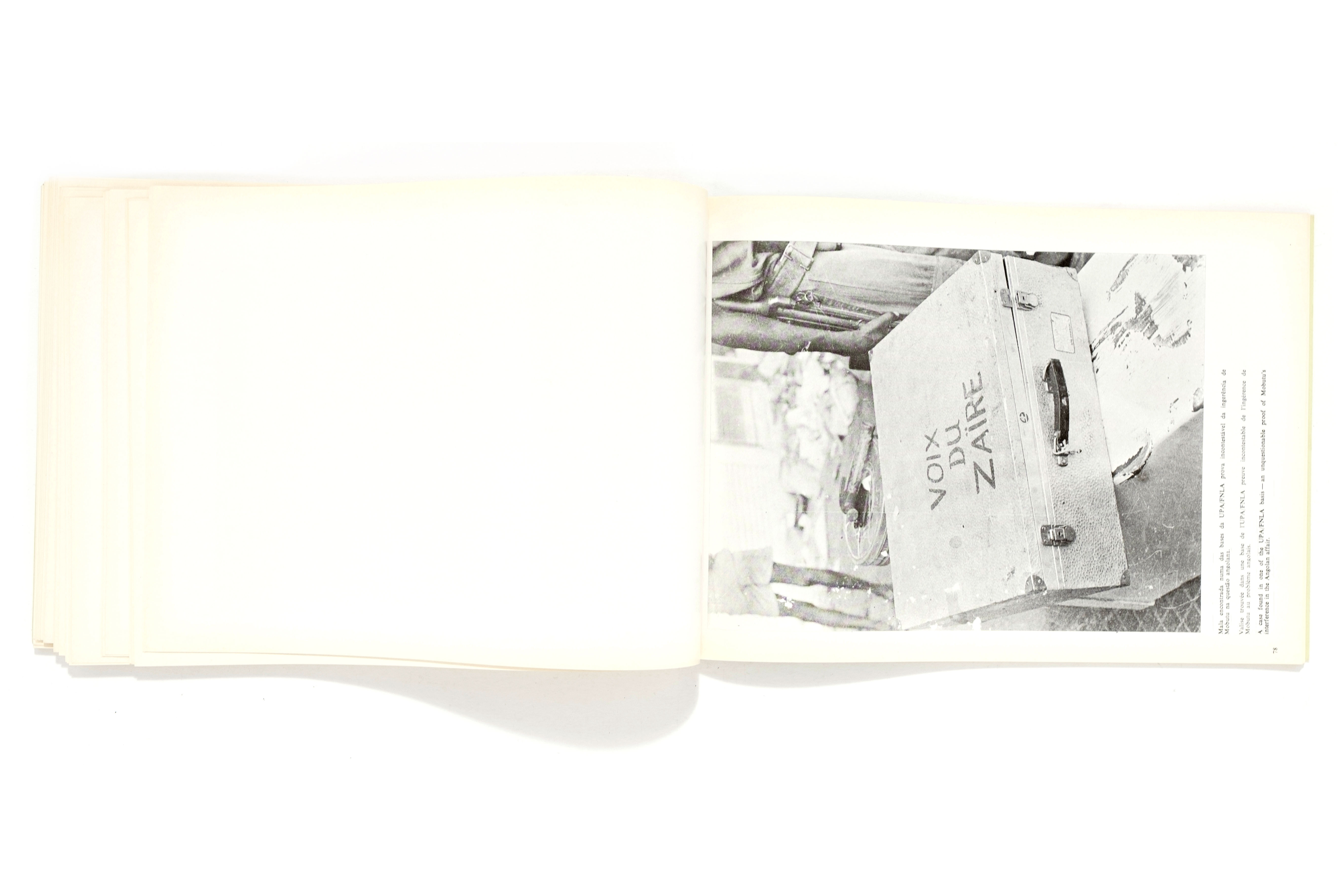 Title: Documentos Fotográficos Photographer(s): Various photographers Designer(s): unknown Writer(s): unknown Publisher: Ministério da Informação, Luanda 1977 Pages: 102 one sided printed plates Language: Portuguese, French and English ISBN: – Dimensions: 21 x 30 cm Edition:   Country: Angola
