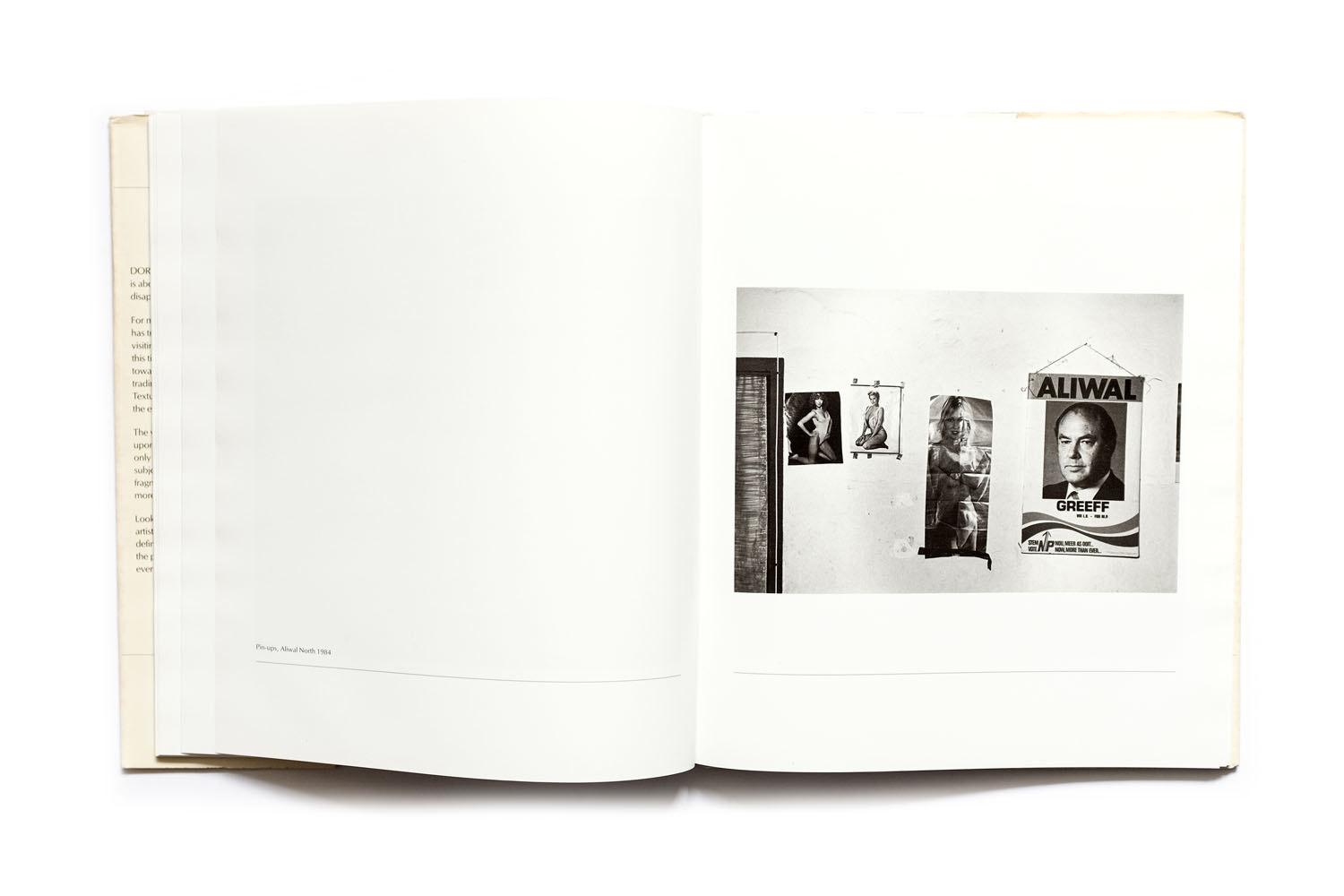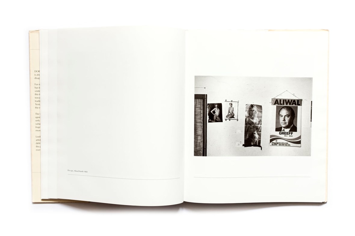 Title: Dorps Photographer(s): Roger Ballen Writer(s): Roger Ballen Designer(s): Lesley van Blerk Publisher: Clifton Publications, Cape Town 1986 Pages: 144 Language: English ISBN: 0 620 09211 4 Dimensions: 24 x 28.5 cm Edition: – Country: South Africa