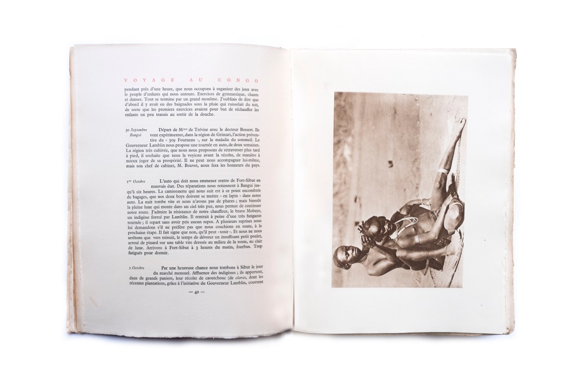 Title: Voyage au Congo suivi de Retour du Tchad Photographer(s): Marc Allégret Designer(s): – Writer(s): André Gide Publisher: Nrf, Paris 1929 Pages: 128 Language: French ISBN: – Dimensions: 25,5 x 33,5 cm Edition: – Country: French Equatorial Africa (Republic of the Congo, Central African Republic, Chad and  Cameroon)