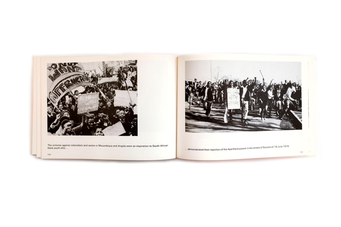 Title: Unity in Action Photographer(s): various photographers Designer(s): unknown Writer(s): Oliver Tambo (introduction) Publisher: African National Congress, London 1982 Pages: 156 Language: English ISBN: 0-903082039 Dimensions: 29.5 x 20.5 cm Edition: – Country: South Africa