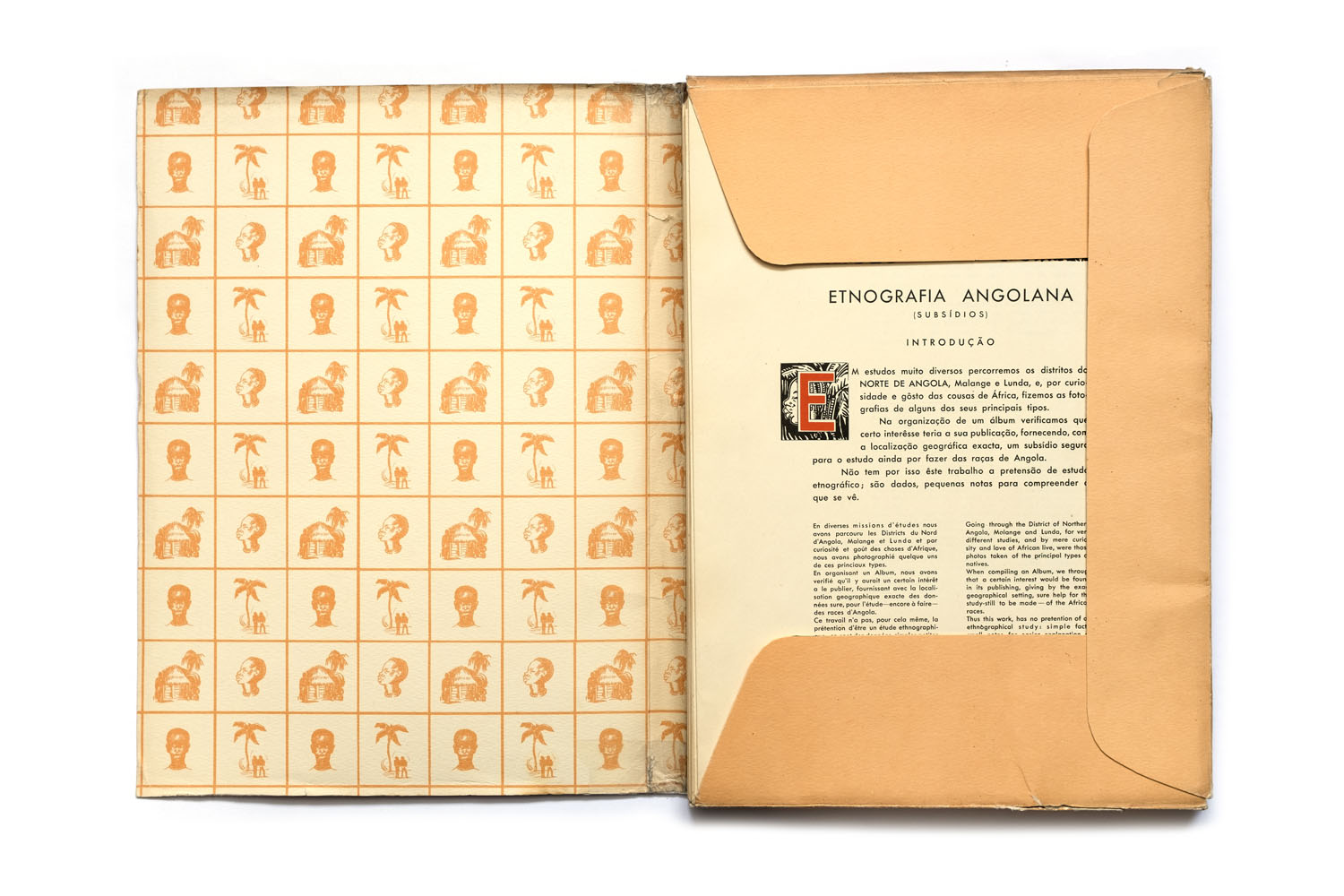 Title: Etnografia Angolana Photographer(s): Fernando Mouta Designer(s): – Writer(s): Fernandon Mouta Publisher: Litografia Nacional, Porto 1933 Pages: Portfolio containing 48 plates, a map and 10 page booklet Language: Portuguese, French and English ISBN: – Dimensions: 25 x 34 cm Edition: Country: Angola Portfolio published for the 1st Colonial Exposition in Lisbon, 1934