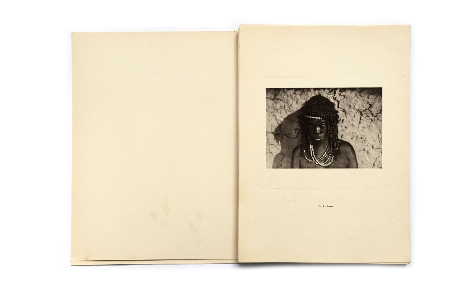 Title: Etnografia Angolana Photographer(s): Fernando Mouta Designer(s): – Writer(s): Fernandon Mouta Publisher: Litografia Nacional, Porto 1933 Pages: Portfolio containing 48 plates, a map and 10 page booklet Language: Portuguese, French and English ISBN: – Dimensions: 25 x 34 cm Edition: Country: Angola Portfolio published for the 1st Colonial Exposition in Lisbon, 1934