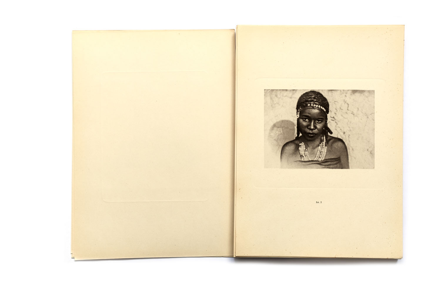 Title: Etnografia Angolana Photographer(s): Fernando Mouta Designer(s): – Writer(s): Fernandon Mouta Publisher: Litografia Nacional, Porto 1933 Pages: Portfolio containing 48 plates, a map and 10 page booklet Language: Portuguese, French and English ISBN: – Dimensions: 25 x 34 cm Edition: Country: Angola Portfolio published for the 1st Colonial Exposition in Lisbon, 1934