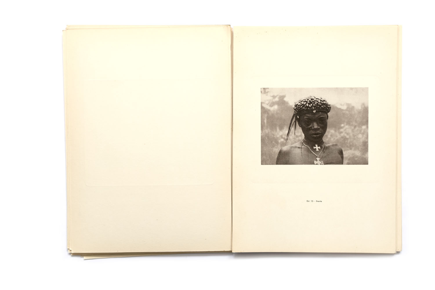 Title: Etnografia Angolana Photographer(s): Fernando Mouta Designer(s): – Writer(s): Fernandon Mouta Publisher: Litografia Nacional, Porto 1933 Pages: Portfolio containing 48 plates, a map and 10 page booklet Language: Portuguese, French and English ISBN: – Dimensions: 25 x 34 cm Edition: Country: Angola Portfolio published for the 1st Colonial Exposition in Lisbon, 1934