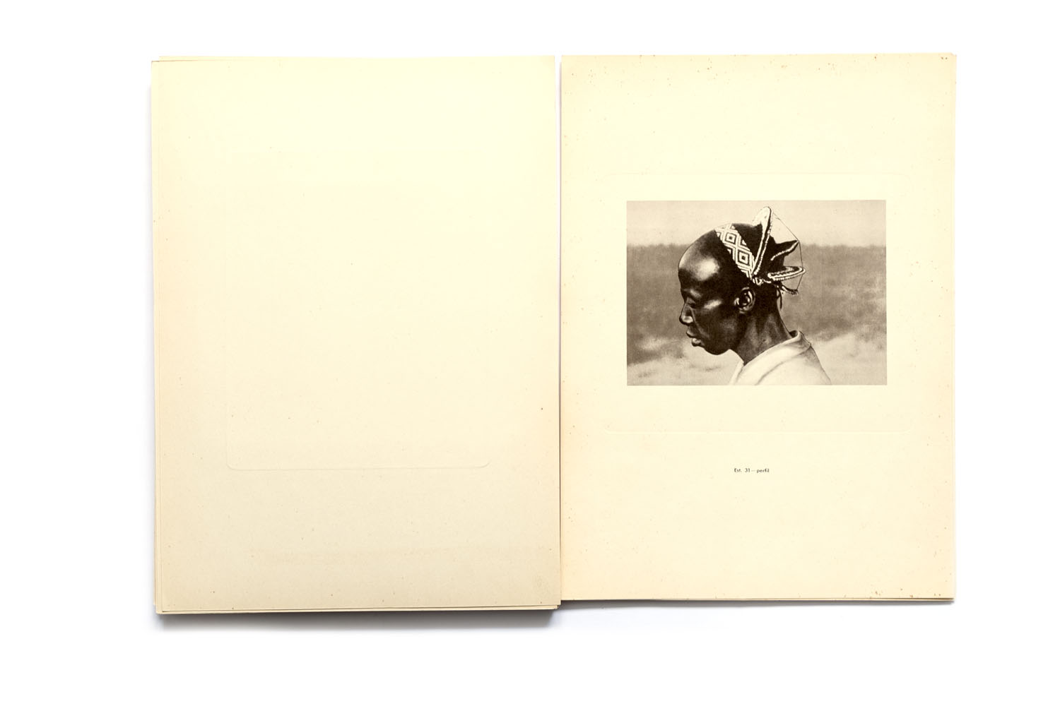 Title: Etnografia Angolana Photographer(s): Fernando Mouta Designer(s): – Writer(s): Fernandon Mouta Publisher: Litografia Nacional, Porto 1933 Pages: Portfolio containing 48 plates, a map and 10 page booklet Language: Portuguese, French and English ISBN: – Dimensions: 25 x 34 cm Edition: Country: Angola Portfolio published for the 1st Colonial Exposition in Lisbon, 1934