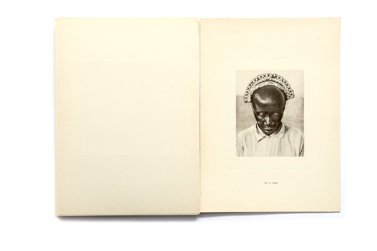 Title: Etnografia Angolana Photographer(s): Fernando Mouta Designer(s): – Writer(s): Fernandon Mouta Publisher: Litografia Nacional, Porto 1933 Pages: Portfolio containing 48 plates, a map and 10 page booklet Language: Portuguese, French and English ISBN: – Dimensions: 25 x 34 cm Edition: Country: Angola Portfolio published for the 1st Colonial Exposition in Lisbon, 1934