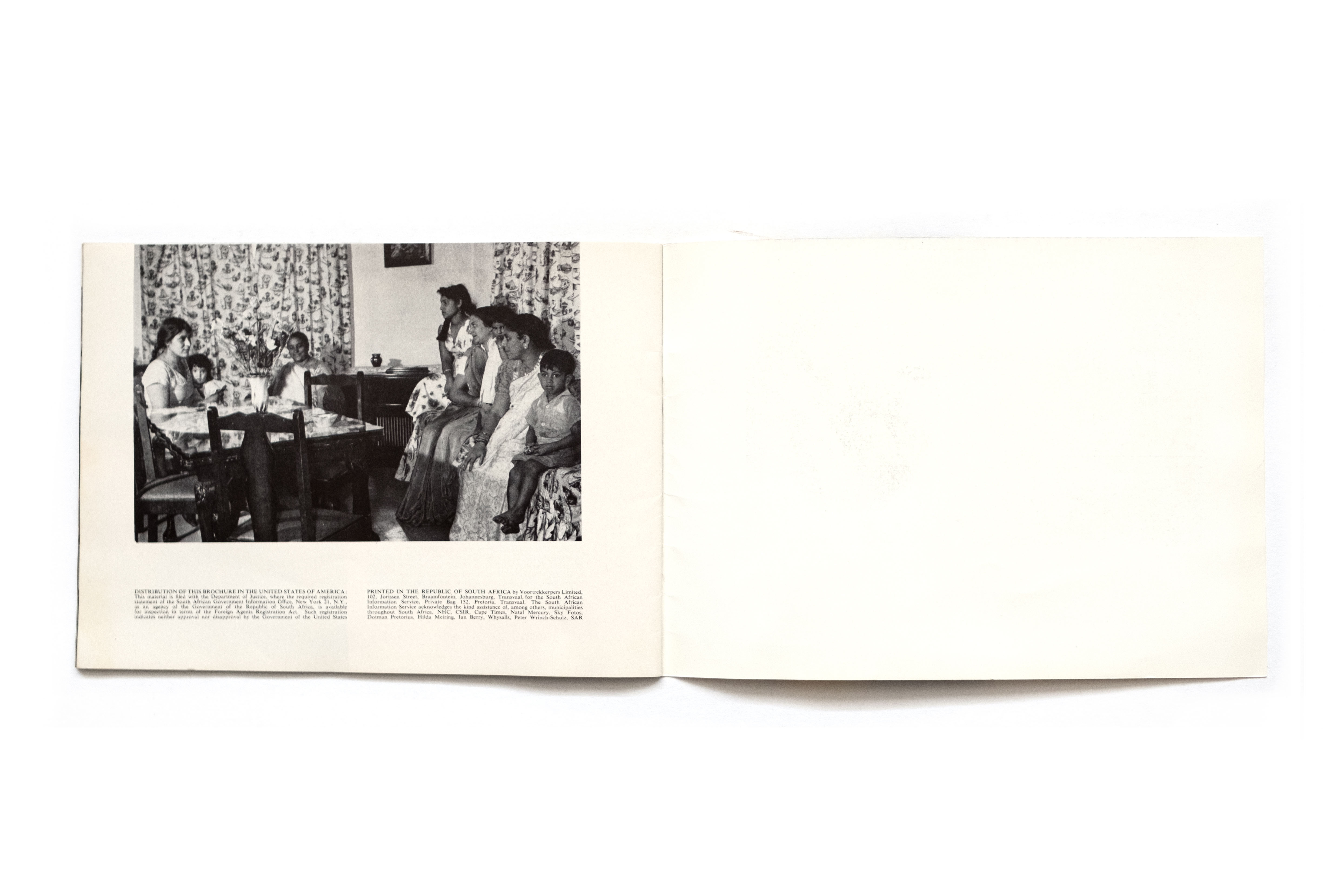 Title: In the Republic of South Africa…Each a roof of his own Photographer(s): Various photographers and agencies among which Ian Berry, Dorman Pretorius, Hilda Meiring and Peter Wrinch-Schulz Designer(s): Ernst de Jong (most probably) Writer(s): Publisher: Voortrekkers Pers Limited,South African Information Service, Johannesburg 1961 (?). Brochure seems to be intended for an American audience Pages: 48 Language: English ISBN: Dimensions: 25 x 18 cm Edition: Country: South Africa