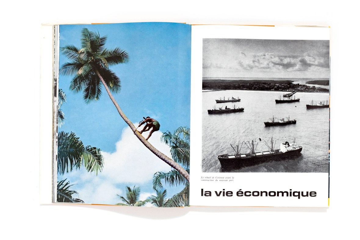 Title: Terre Dahoméenne Photographer(s): Louis Normand, Kid and René Corpel, Afrique-Photo, Philippe Billère and Du service Photographique du Ministère de l’information du Dahomey Designer(s): unknown Writer(s): unknown Publisher: Ministère de l’information, de la jeunesse et des sports, Paul Bory, Monaco 1970 (the book is not dated, though it definitely was published between 1965 and 1975) Pages: 180 pages Language: French ISBN: Dimensions: 24 x 32 cm Edition: Edition with slipcase. There exists another edition without slipcase, an alternative jacket and an altered lay-out. Country: Dahomey, Benin