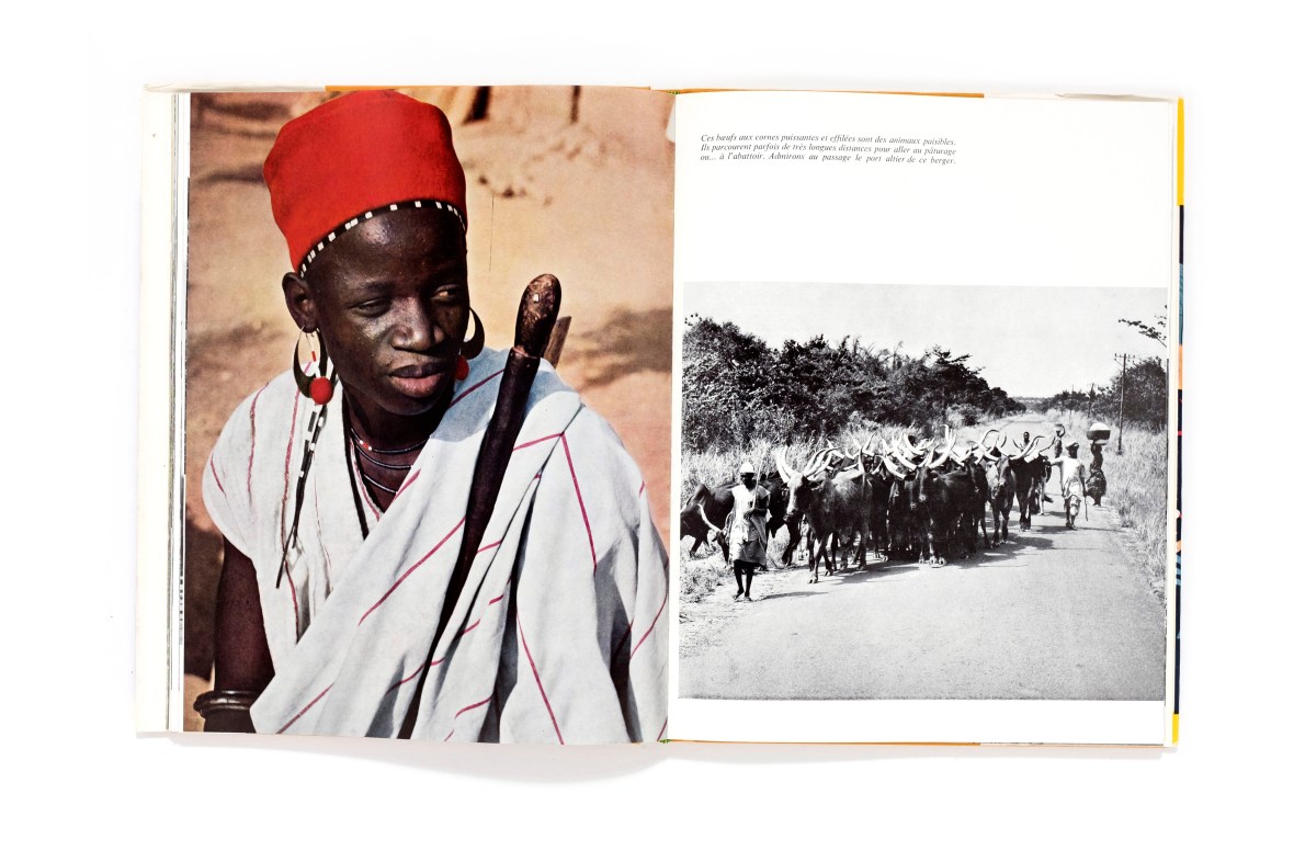 Title: Terre Dahoméenne Photographer(s): Louis Normand, Kid and René Corpel, Afrique-Photo, Philippe Billère and Du service Photographique du Ministère de l’information du Dahomey Designer(s): unknown Writer(s): unknown Publisher: Ministère de l’information, de la jeunesse et des sports, Paul Bory, Monaco 1970 (the book is not dated, though it definitely was published between 1965 and 1975) Pages: 180 pages Language: French ISBN: Dimensions: 24 x 32 cm Edition: Edition with slipcase. There exists another edition without slipcase, an alternative jacket and an altered lay-out. Country: Dahomey, Benin