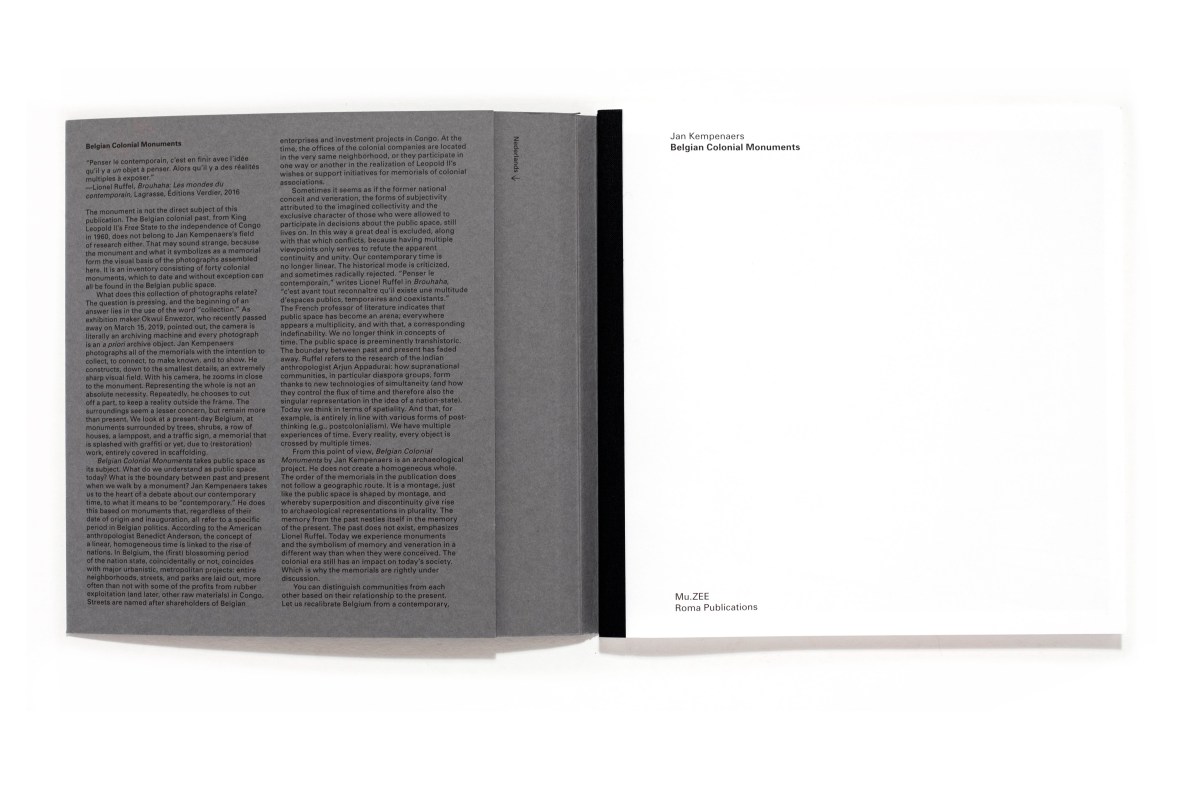 Title: Belgian colonial monuments  Photographer(s): Jan Kempenaers Designer(s): Roger Willems Writer(s): – Publisher: Roma Publications, Amsterdam 2018 and Mu.ZEE, Oostende 2018 Pages: 72 pages Language: English ISBN: 9789492811509 Dimensions: 22 x 22 cm Edition: 600 copies Country: Belgian Congo