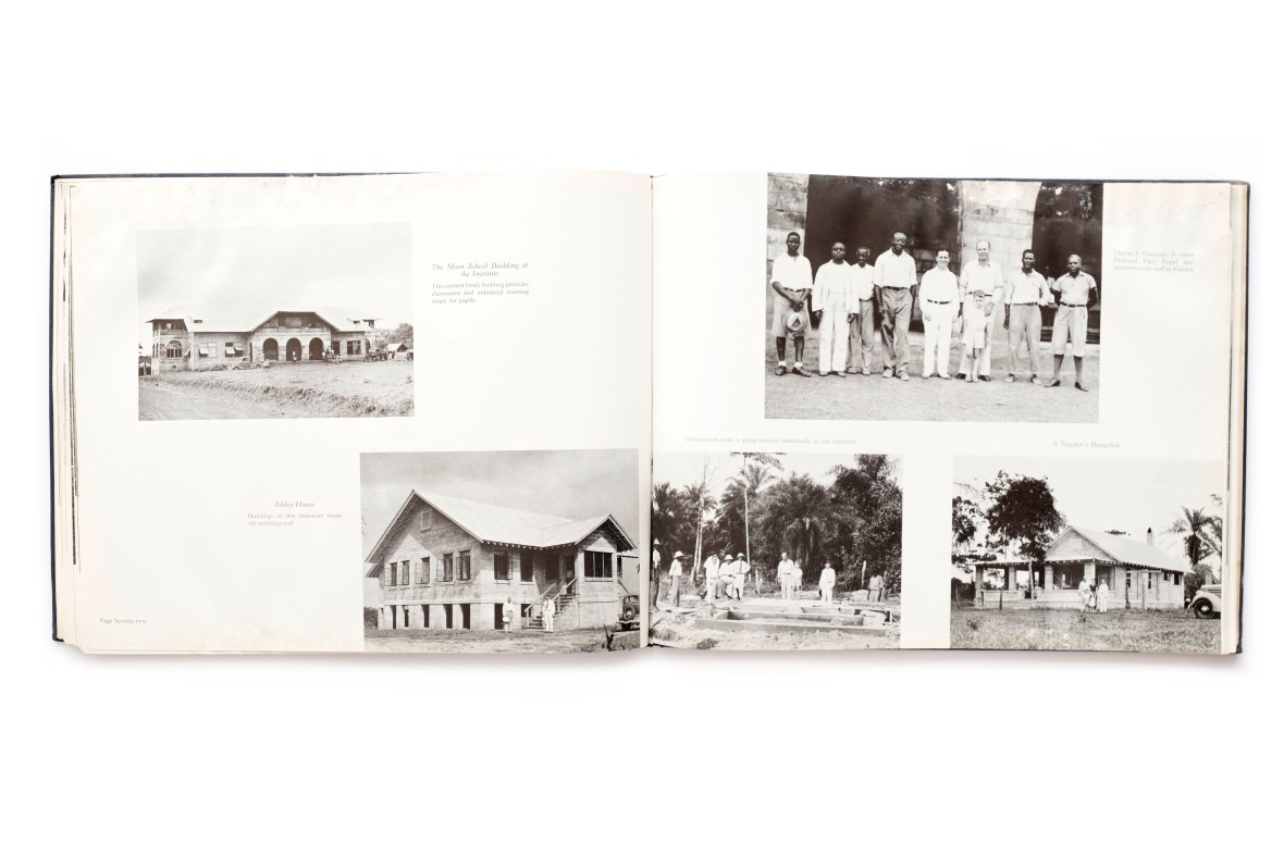 Title: Views in Liberia Photographer(s): Unknown Designer(s): Unknown Writer(s): Unknown Publisher: R.R. Donnelley & Sons Company, Chicago 1937 Printer: Lakeside Press Pages: 112 Language: English ISBN: – Dimensions: 35,5 x 28 cm Country: Liberia Company book of Firestone Plantations Company dedicated to Edwin Barclay. President of Liberia